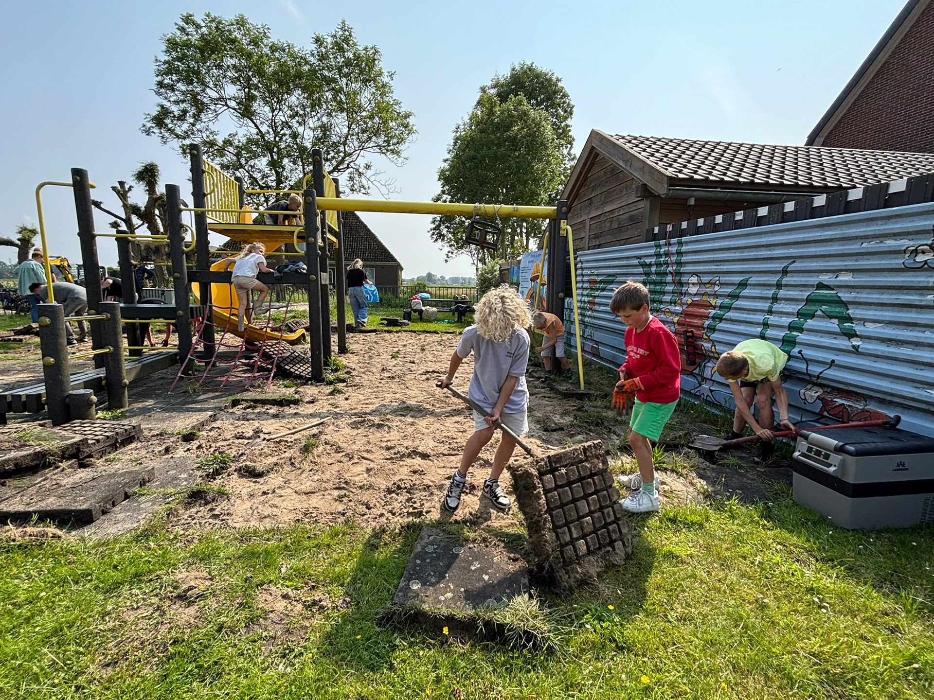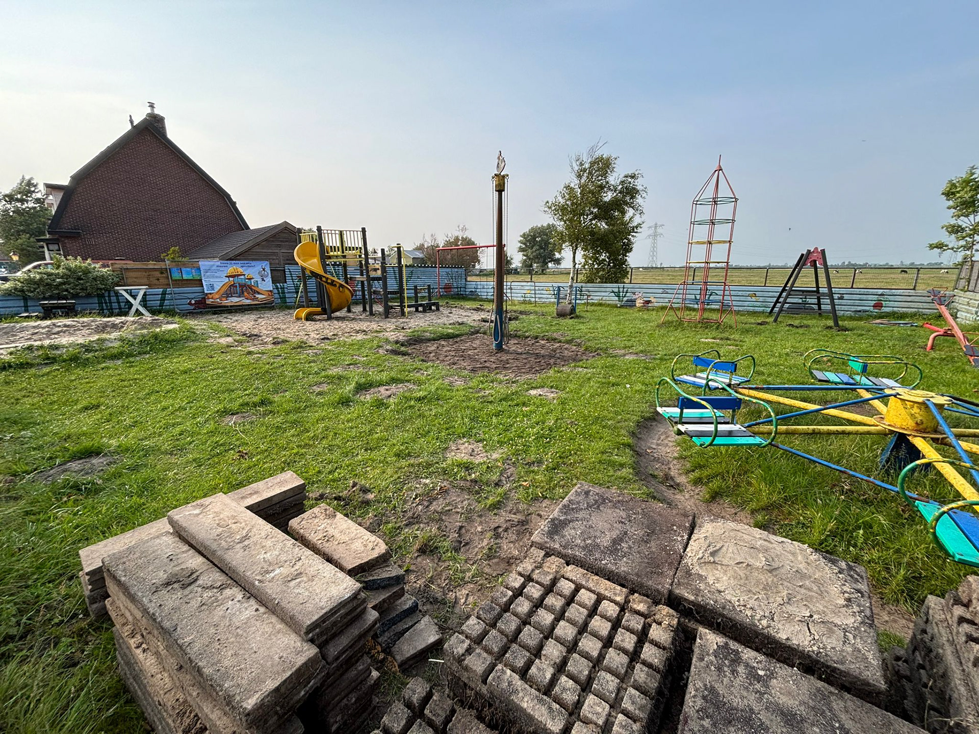 De eerste stappen zijn gezet naar een nieuwe speeltuin. Met onze gezinnen hebben we alvast de rubberen tegels verwijderd. Vervolgens is Meijns Grondverzet & Groenvoorziening aan het werk gegaan en worden de oude toestellen verwijderd, de beschoeiing vervangen en is er een tijdelijke speeltuin ingericht!