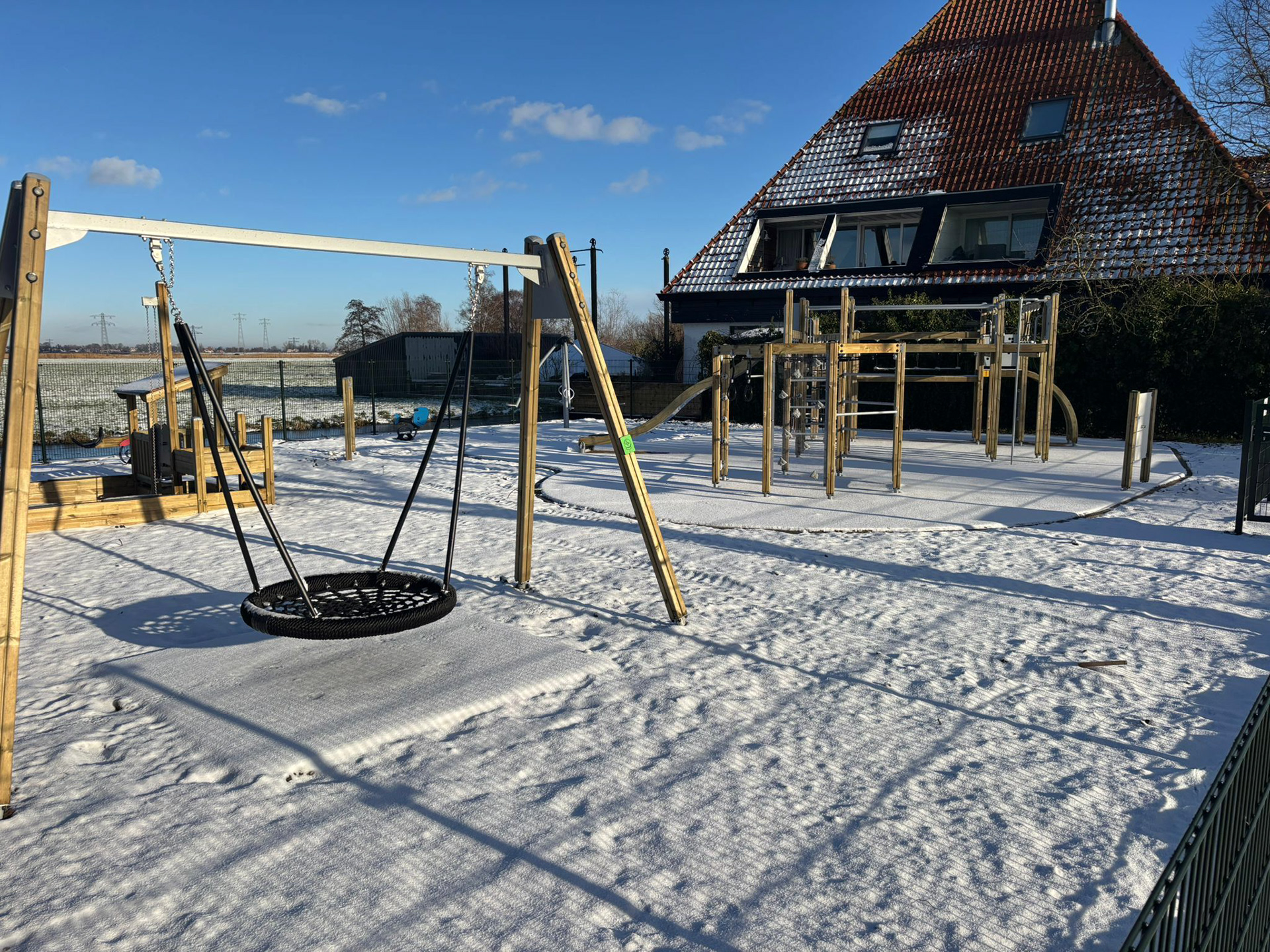 Er is al hard gewerkt aan de nieuwe speeltuin. Alleen moeten we nog even geduld hebben, als de sneeuw weer gesmolten is en kou uit de grond is, kunnen de laatste werkzaamheden worden afgerond. Gedurende de werkzaamheden mag en kan er niet gespeeld worden. Zodra de hekken weg zijn, kan iedereen weer volop spelen!